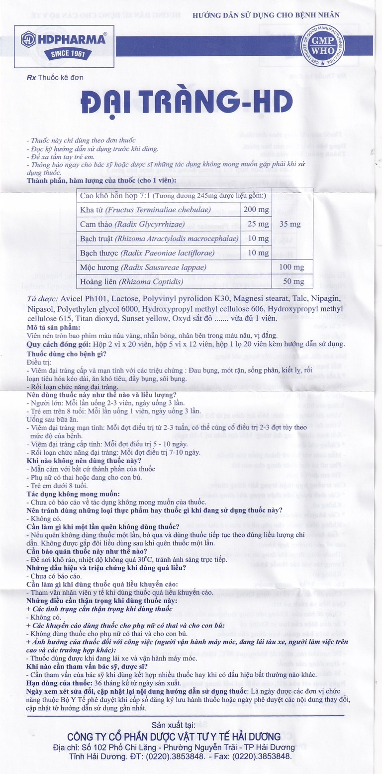 Thuốc Đại Tràng-HD điều trị viêm đại tràng cấp và mạn tính (5 vỉ x 12 viên)