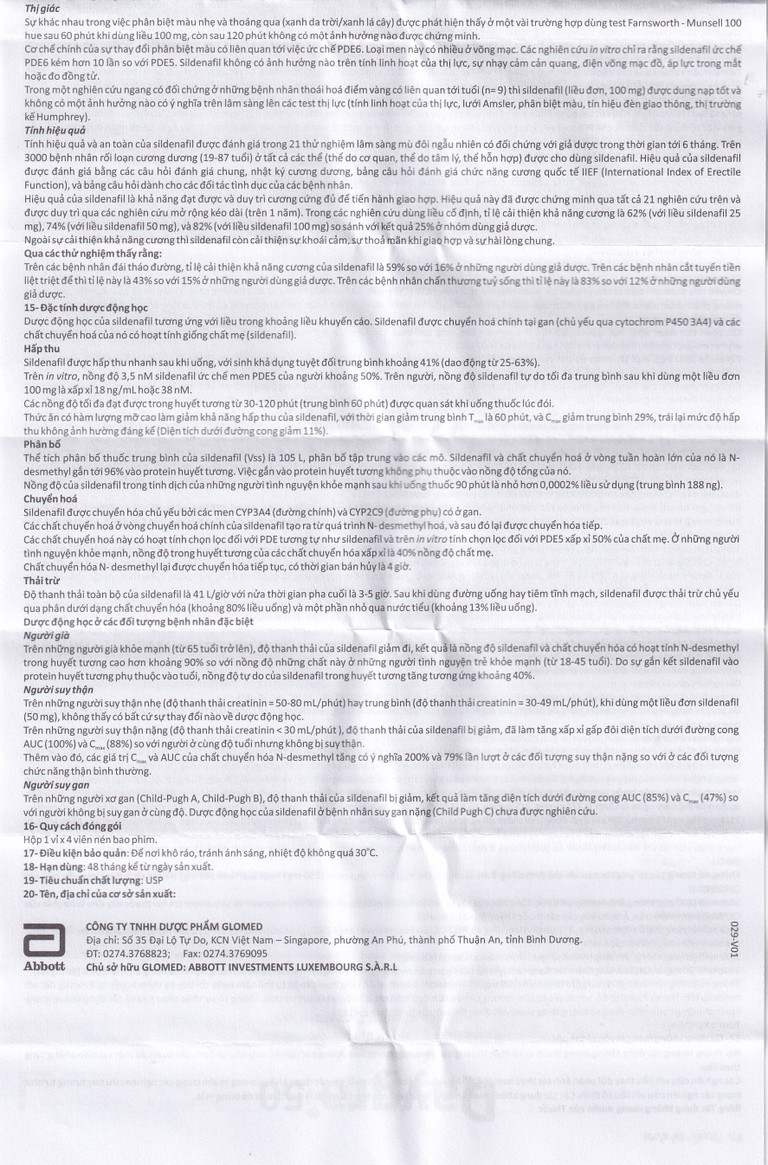 Sildenafil, một thuốc dùng đường uống trong điều trị rối loạn cương dương (ED), là thuốc ức chế chọn lọc guanosin monophosphat vòng (cGMP) – phosphodiesterase đặc hiệu typ 5 (PDES).