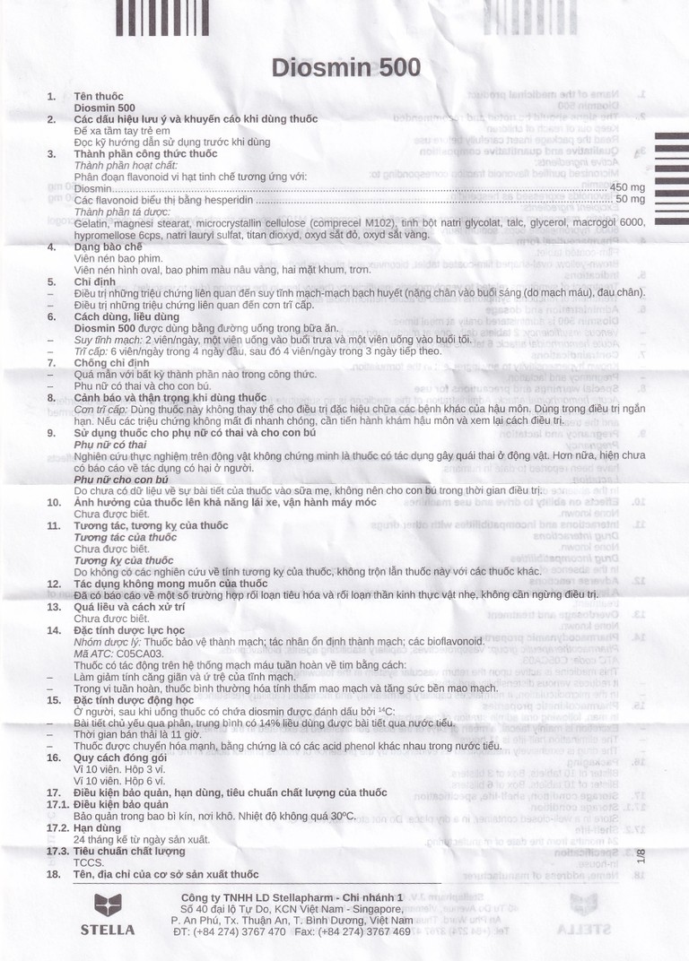 Thuốc Diosmin 500 Stella điều trị triệu chứng liên quan đến suy tĩnh mạch – mạch bạch huyết (6 vỉ x 10 viên)SẢN PHẨM