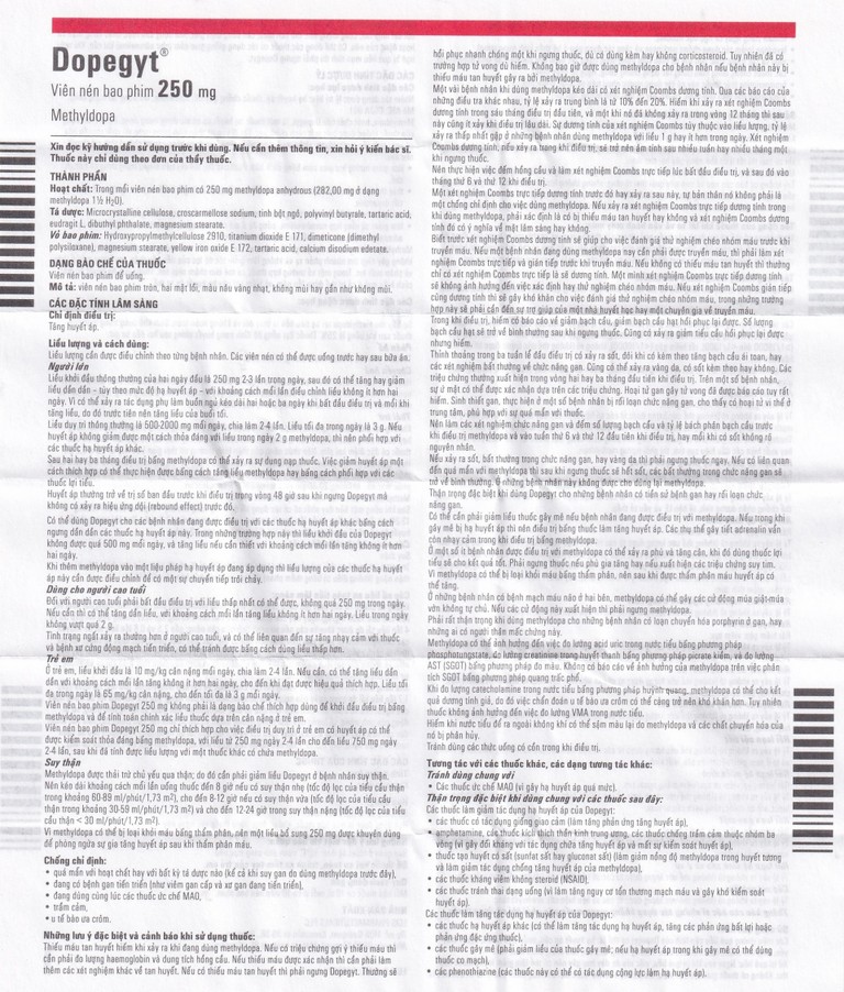 Cách dùng Thuốc Dopegyt 250mg