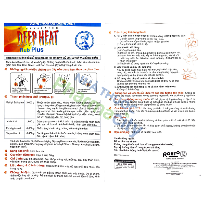 Thuốc dùng ngoài Deep Heat điều trị các bệnh thấp khớp, viêm khớp, đau cơ (tuýp 30g)