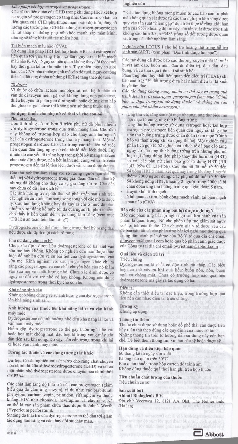 Chưa xác định được liệu dydrogesterone có bài tiết vào sữa mẹ hay không. Không có nghiên cứu nào được thực hiện để nghiên cứu về sự bài tiết của dydrogesterone vào sữa mẹ.