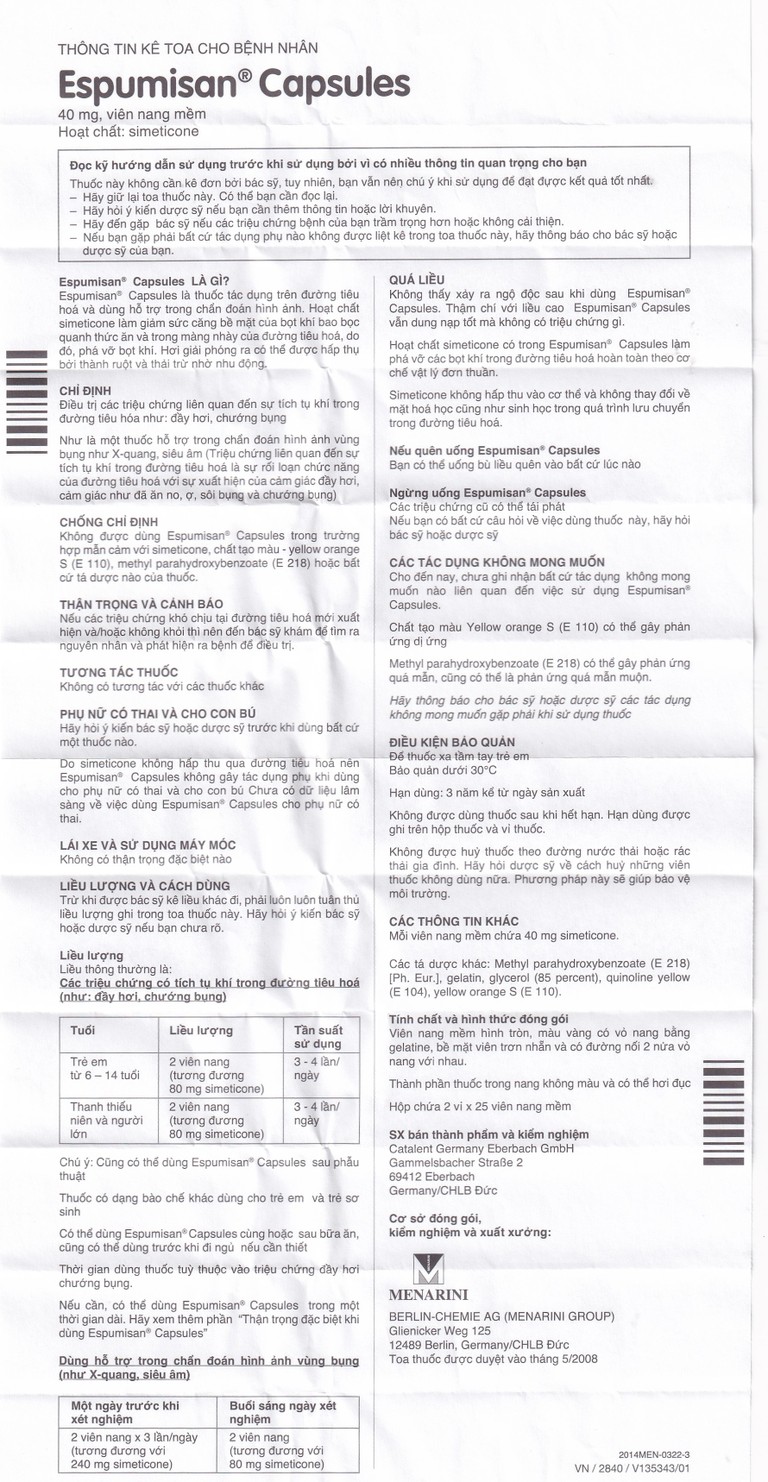 - Cũng có thể dùng Espumisan Capsules sau phẫu thuật.