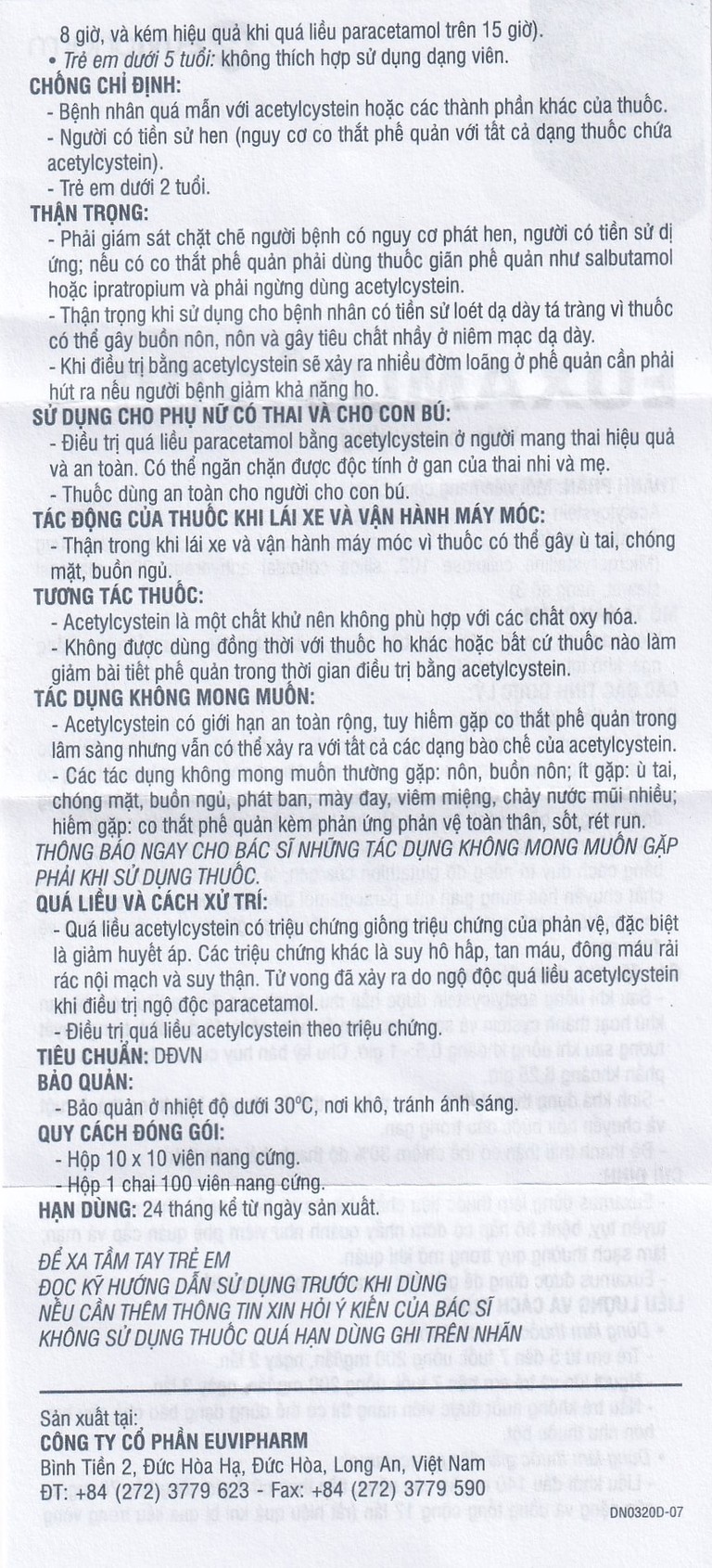 Thuốc Euxamus 200mg Euvipharm tiêu chất nhầy trong bệnh nhầy nhớt (10 vỉ x 10 viên)SẢN PHẨM