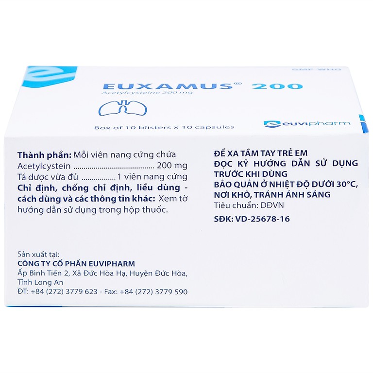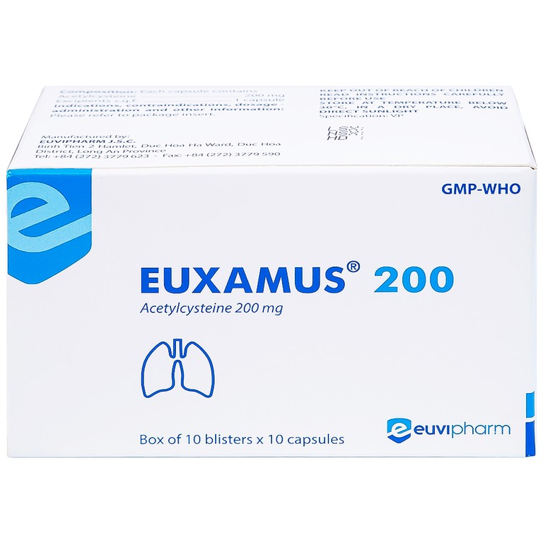 Thuốc Euxamus 200mg Euvipharm tiêu chất nhầy trong bệnh nhầy nhớt (10 vỉ x 10 viên)
