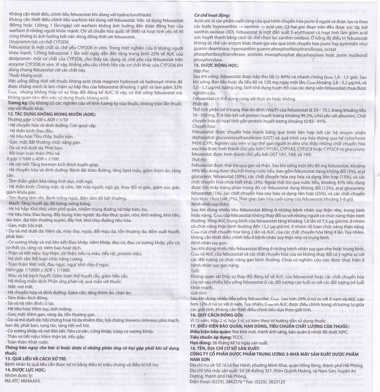 Febuxostat có thể được dùng đồng thời với naproxen mà không cần điều chỉnh liều febuxostat hoặc naproxen.