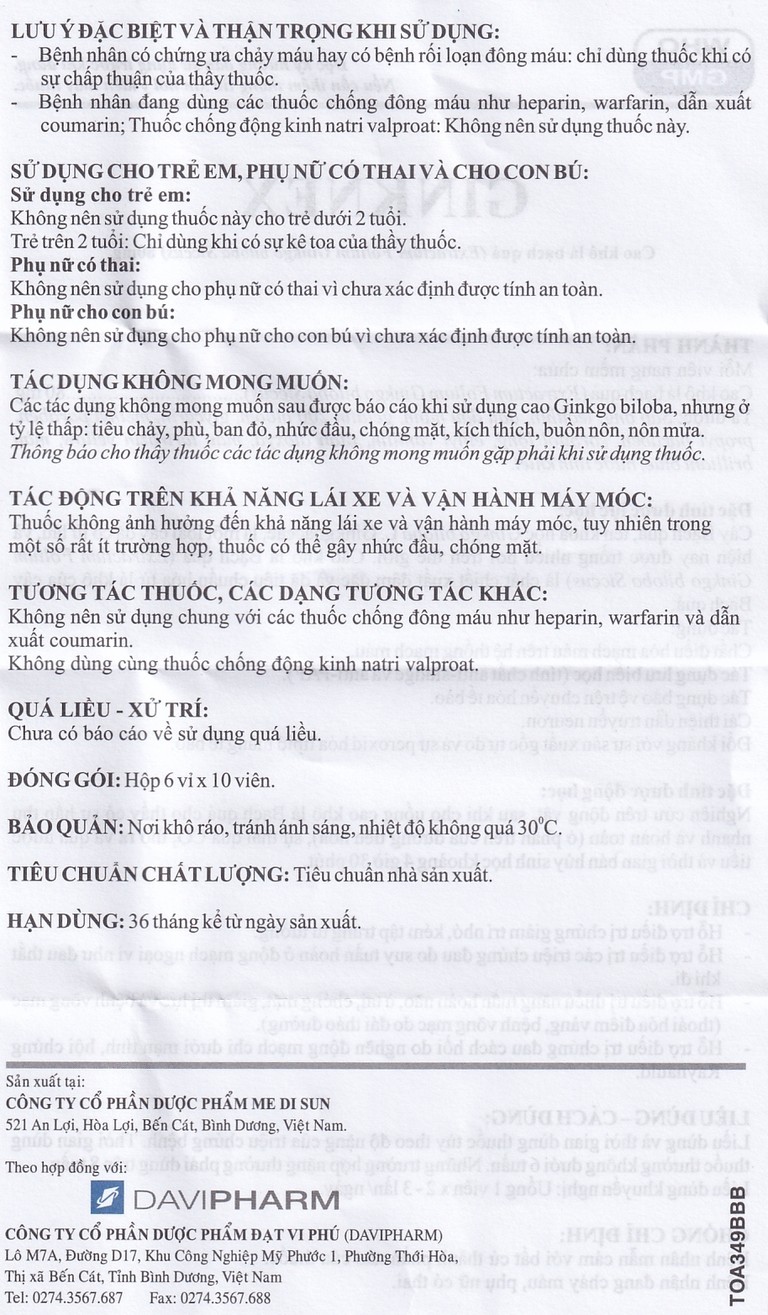 Hỗ trợ điều trị thiểu năng tuần hoàn não, ù tai, chóng mặt, giảm thị lực và bệnh võng mạc (thoái hóa điểm vàng, bệnh võng mạc do đái tháo đường).