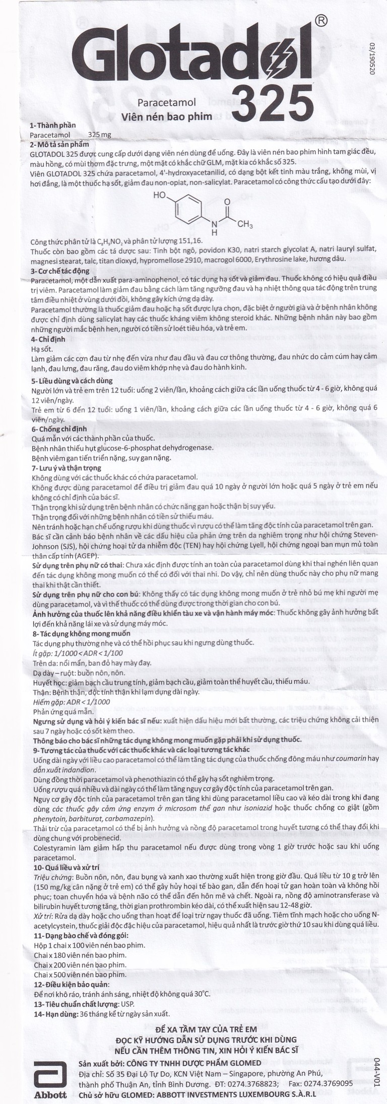 Cách dùng Thuốc Glotadol 325