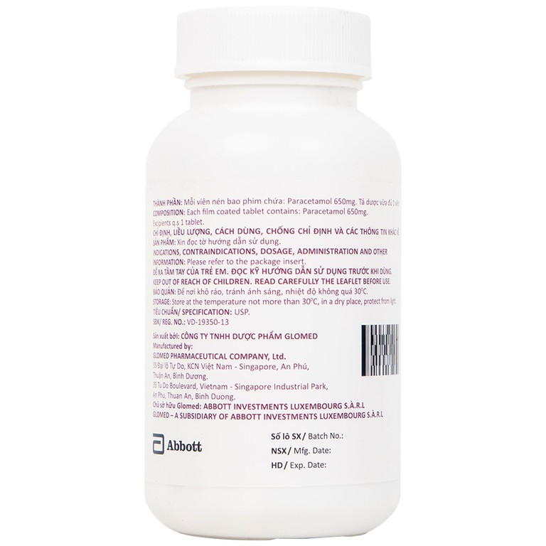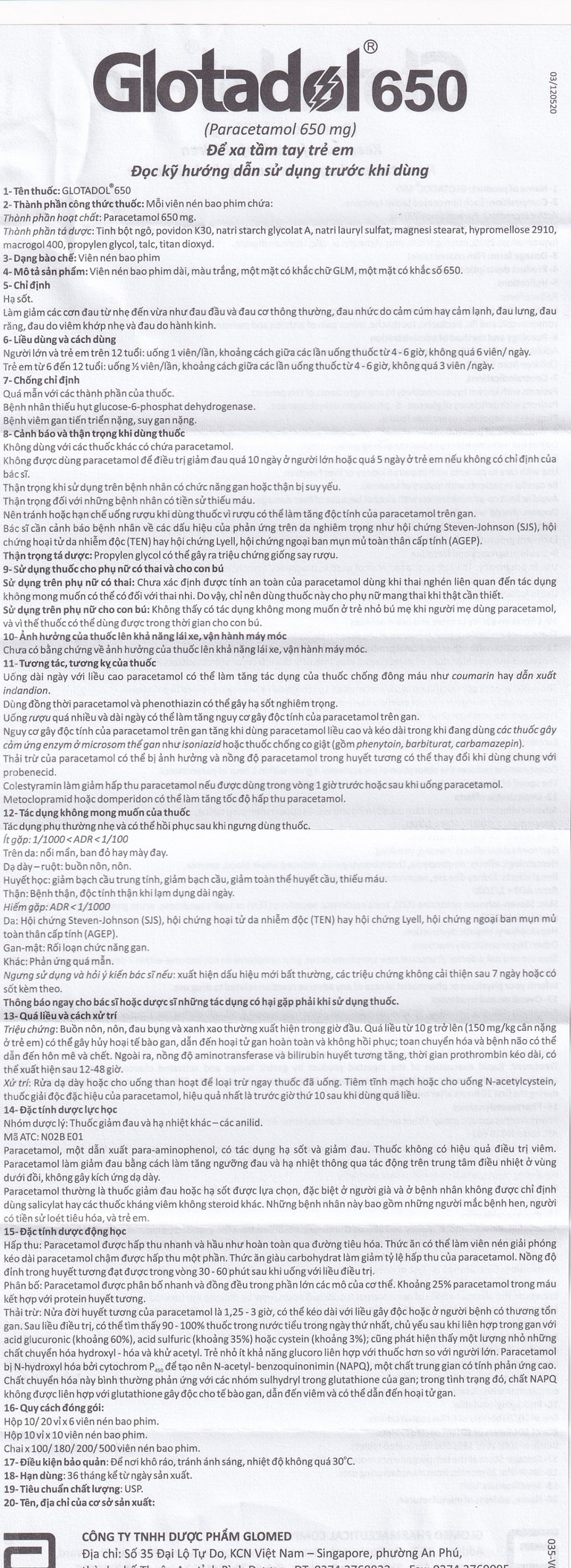 Thuốc Glotadol 650 Abbott hỗ trợ hạ sốt và giảm đau (200 viên)Thuốc Glotadol 650 Abbott hỗ trợ hạ sốt và giảm đau (200 viên)