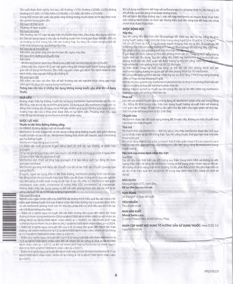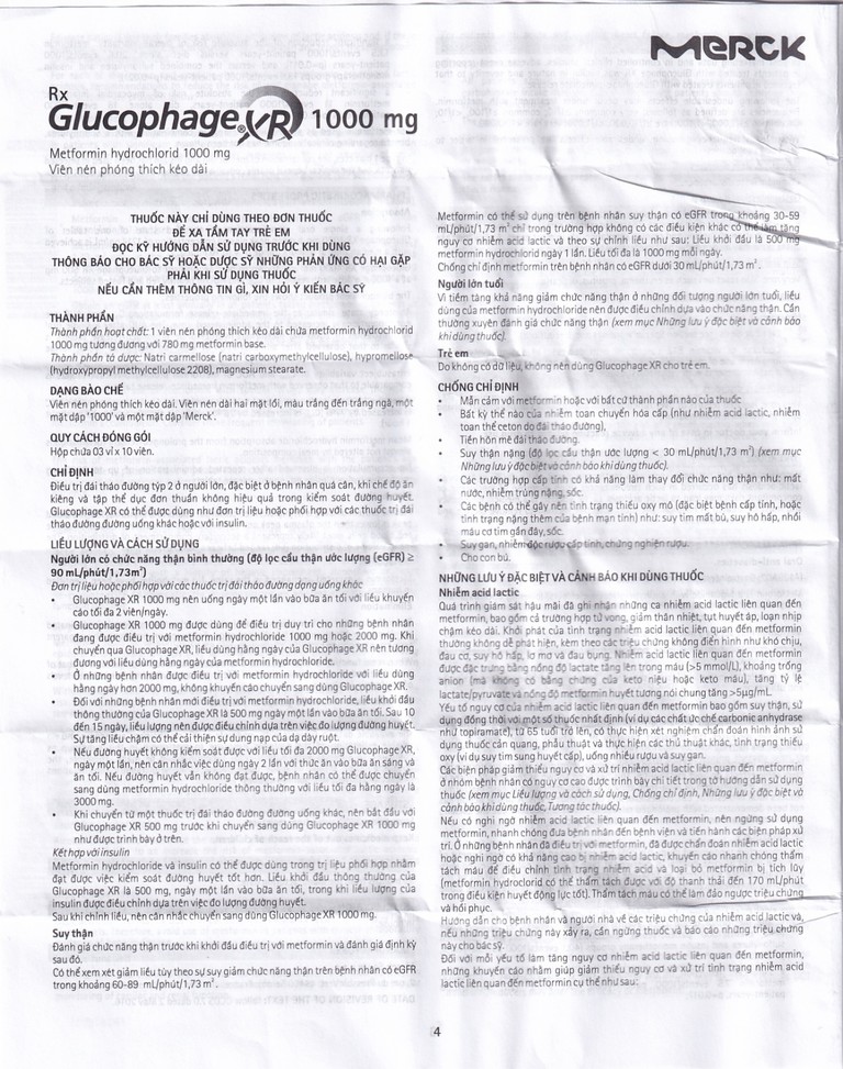 Luôn luôn dùng Glucophage Xr 1000 mg theo sự chỉ dẫn của bác sĩ. Hãy hỏi bác sĩ hay dược sĩ nếu cần.