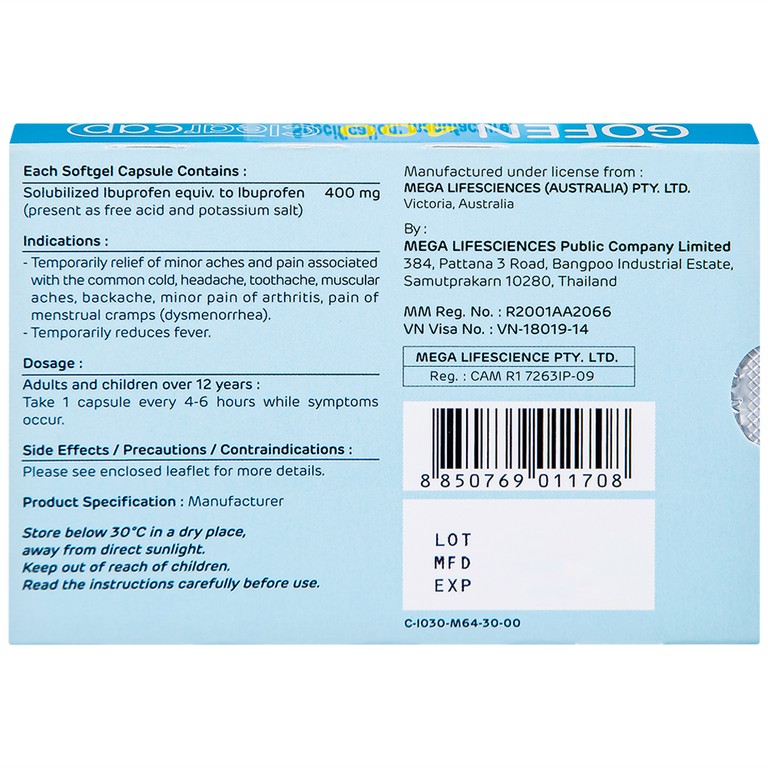Thuốc Gofen 400 MEGA We care điều trị hạ sốt, giảm đau (5 vỉ x 10 viên)SẢN PHẨM