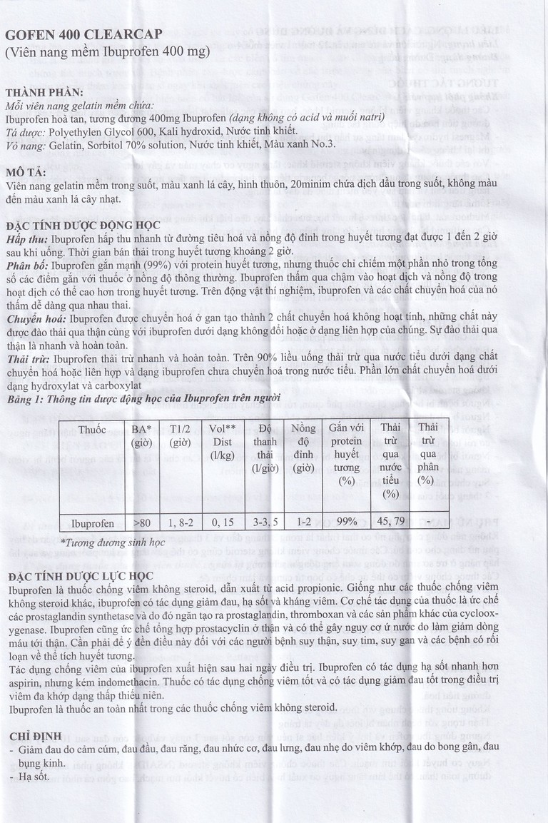 Thuốc Gofen 400 được chỉ định dùng trong các trường hợp sau: