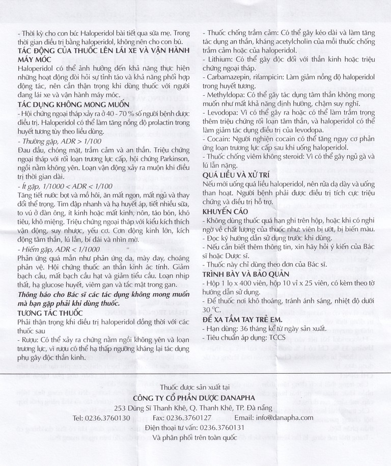 Thuốc Haloperidol 1.5mg Danapha điều trị các trạng thái kích động tâm thần, vận động (10 vỉ x 25 viên)