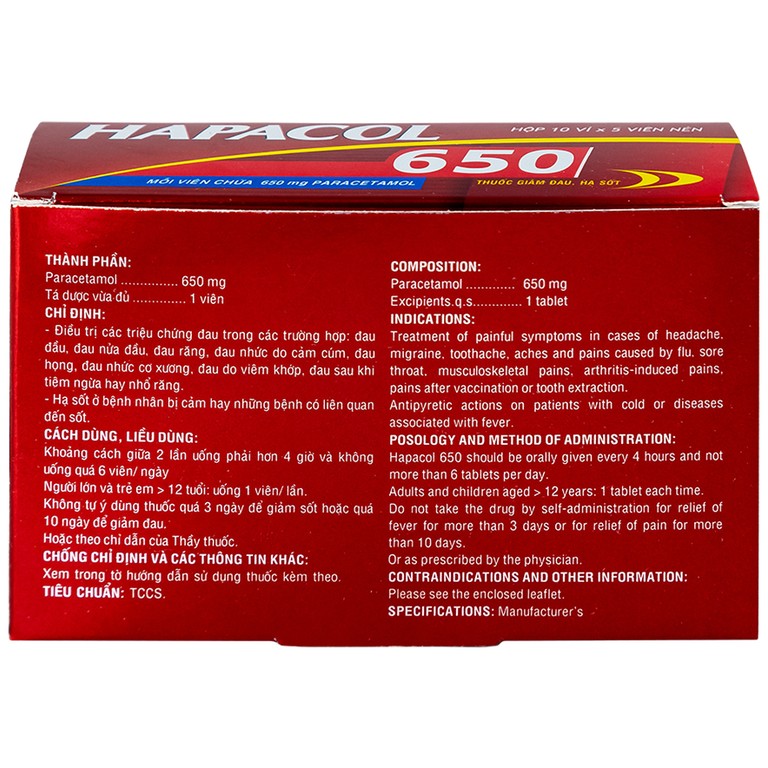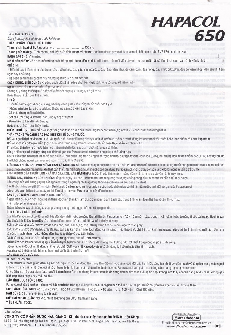 Thuốc Hapacol 650 DHG giảm đau, hạ sốt (10 vỉ x 5 viên)SẢN PHẨM