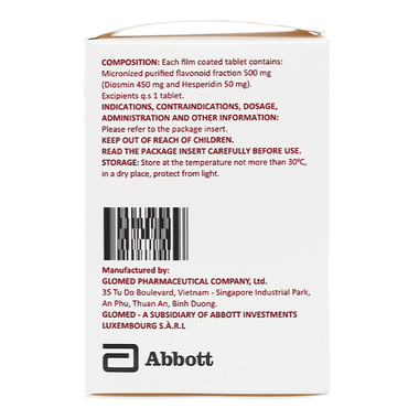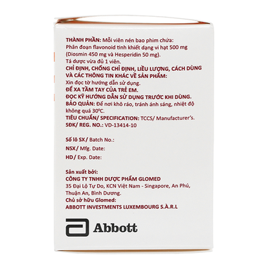 | Phân đoạn flavonoid tinh khiết dạng vi hạt (diosmin 450 mg và hesperidin 50 mg). |