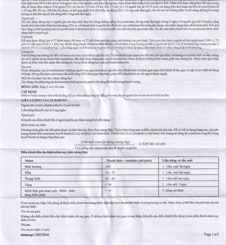 Cách dùng Thuốc Histalong – L 5mg