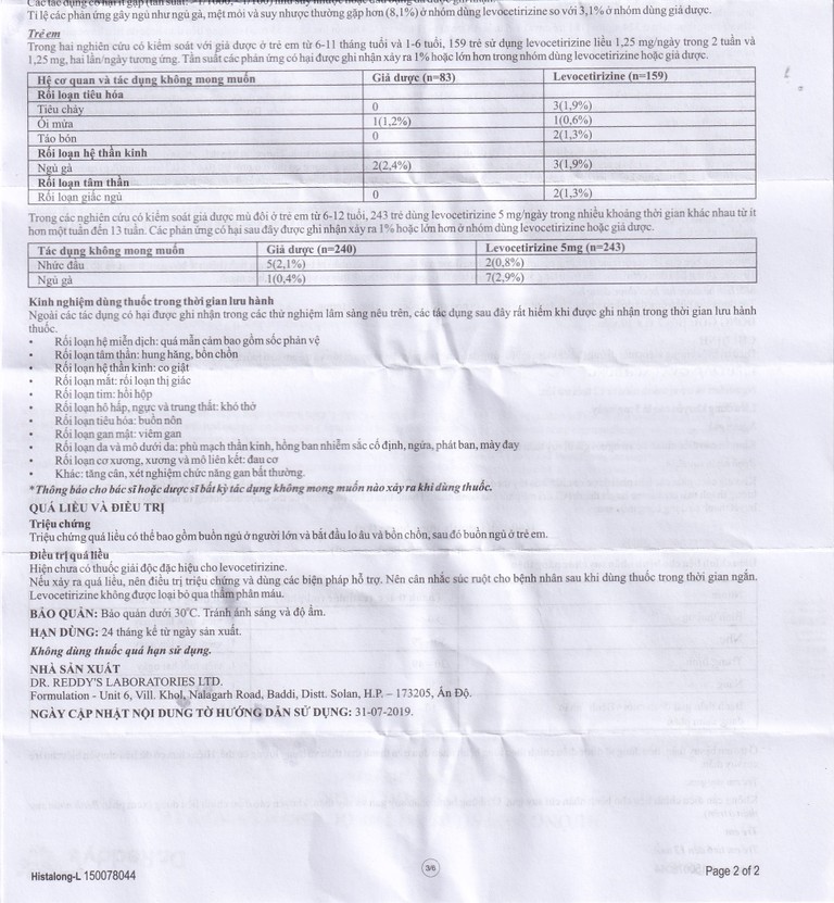 Thuốc Histalong – L 5mg Dr. Reddy điều trị triệu chứng viêm mũi dị ứng (2 vỉ x 10 viên)SẢN PHẨM