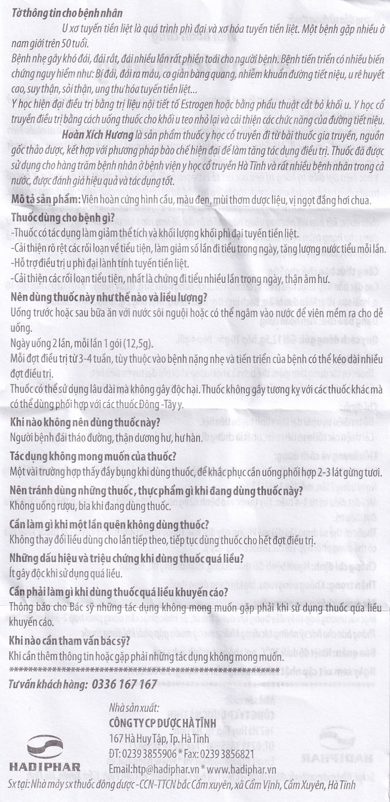 Thuốc Hoàn Xích Hương Hadiphar điều trị u phì đại lành tính tuyến tiền liệt (10 gói)SẢN PHẨM