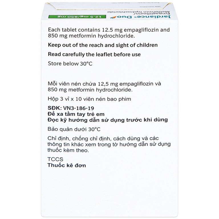 Jardiance duo 12.5 mg/850 mg Boehringer 3×10 là thuốc dùng đường uống.