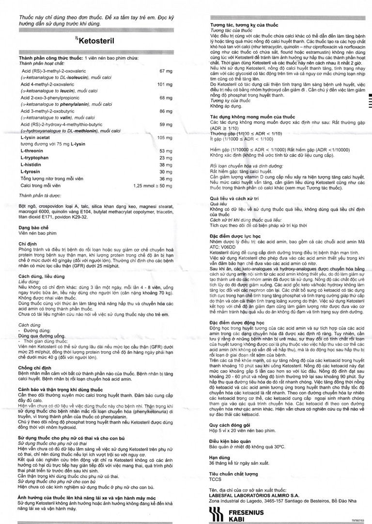 Thuốc Ketosteril Fresenius Kabi phòng ngừa và điều trị suy thận mạn (5 vỉ x 20 viên)