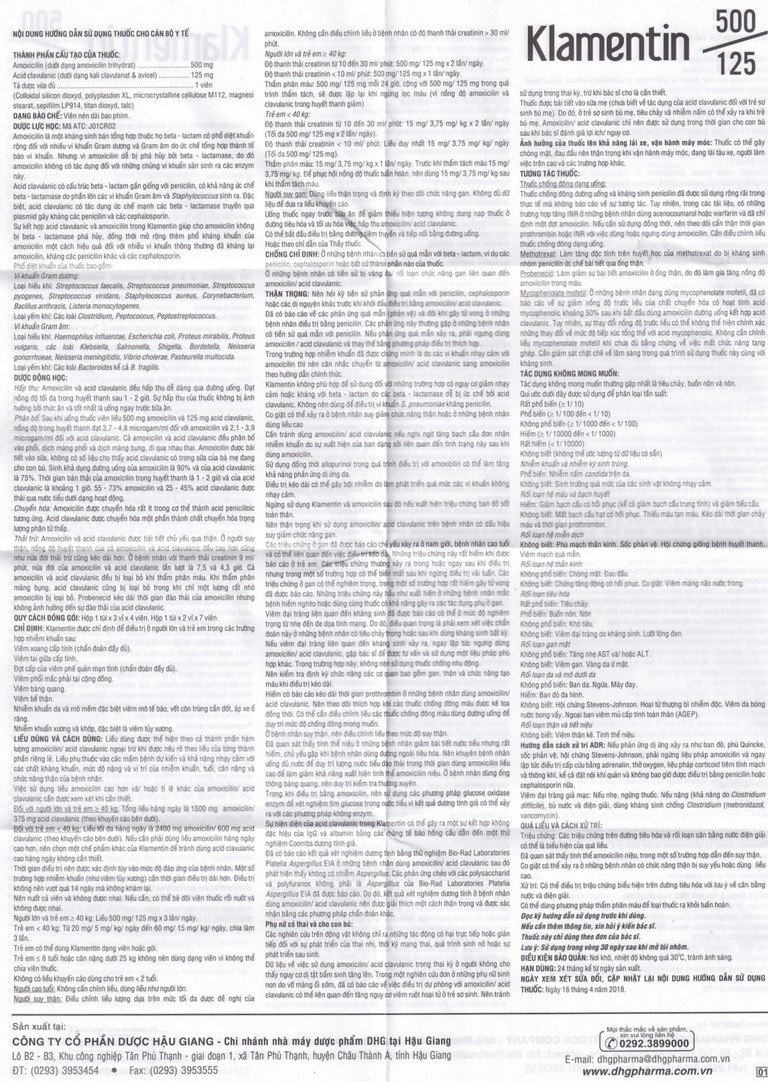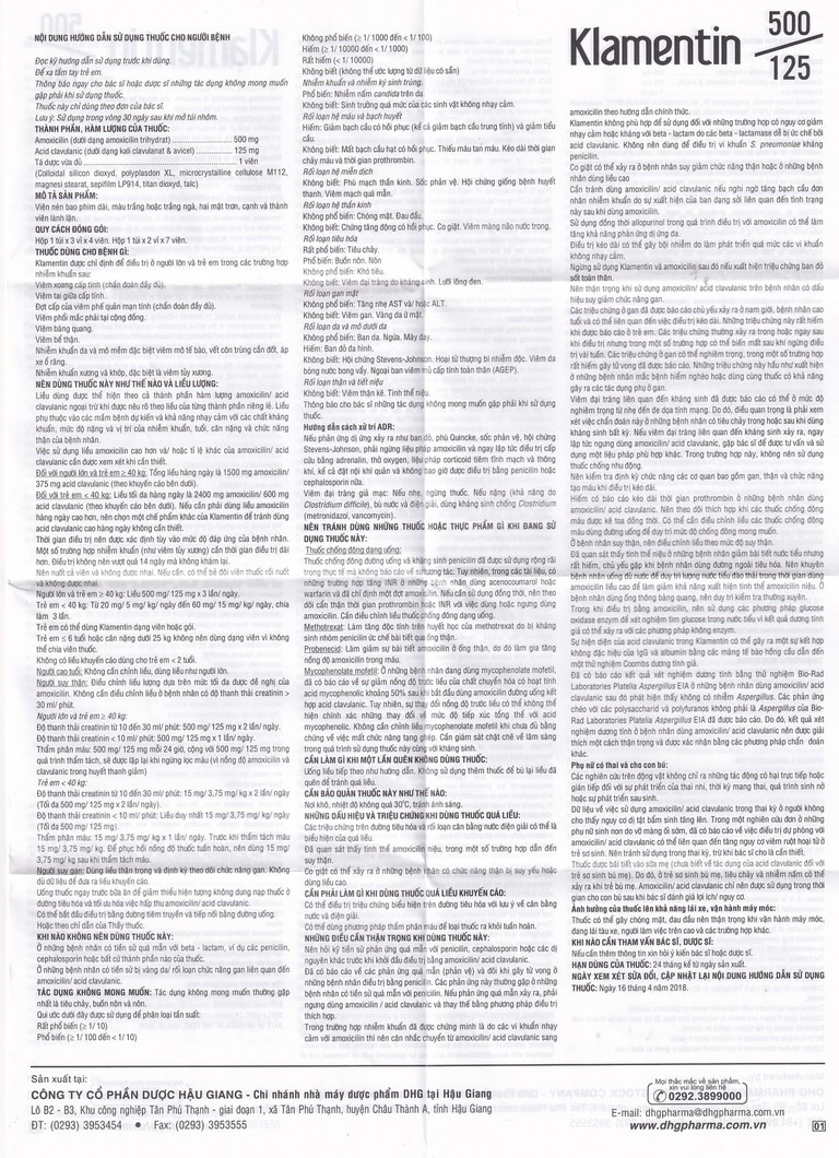 Thuốc Klamentin 500/125 DHG Pharma điều trị viêm xoang, viêm tai giữa, viêm phế quản (3 vỉ x 4 viên)