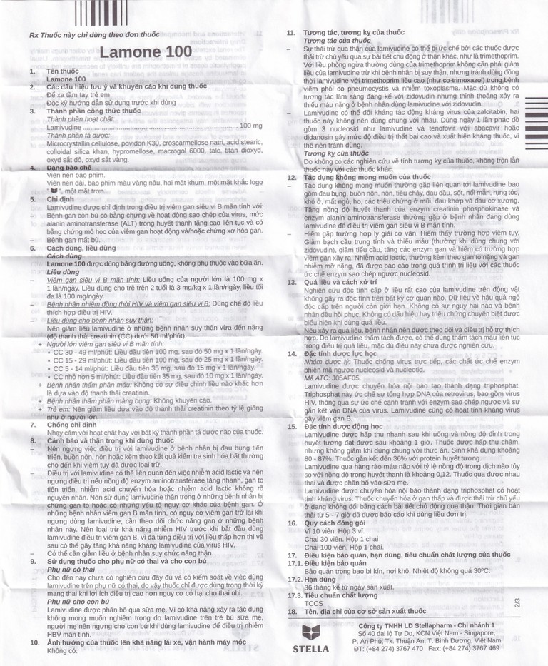 Thuốc Lamone 100 Stella điều trị viêm gan siêu vi B mãn tính (3 vỉ x 10 viên)
