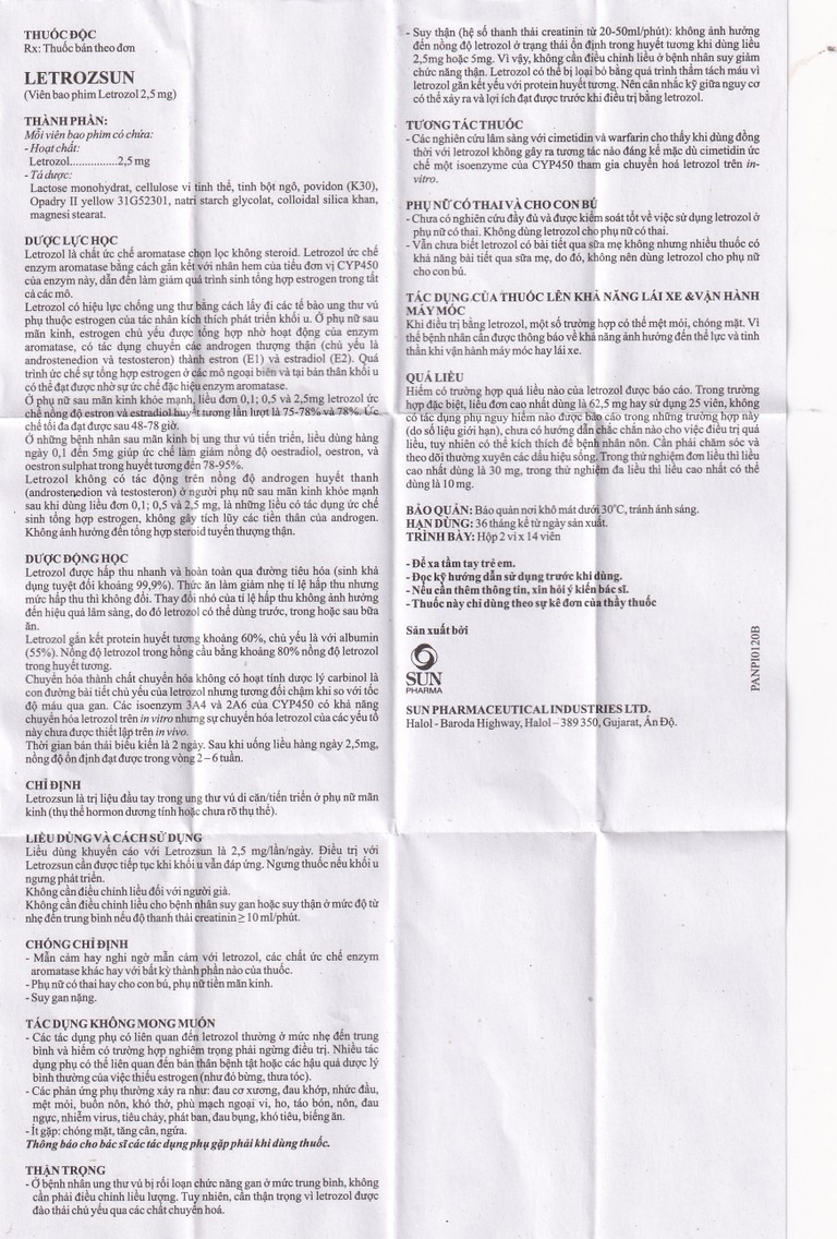 Cách dùng Thuốc Letrozsun 2.5mg