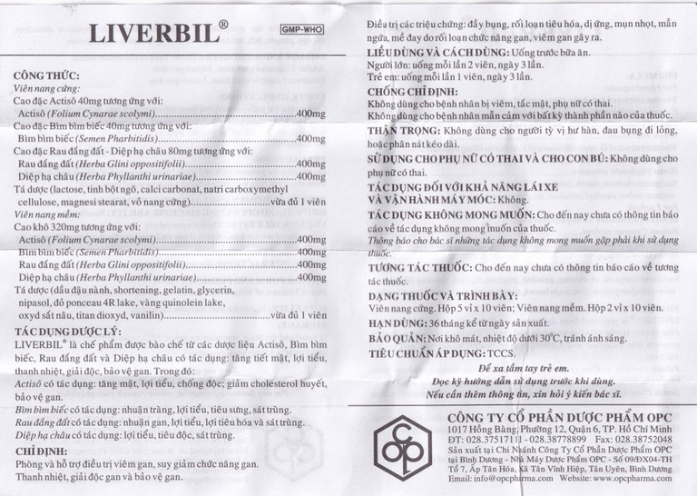 Liverbil® là chế phẩm được bào chế từ các dược liệu actisô, bìm bìm biếc, rau đắng đất và diệp hạ châu có tác dụng tăng tiết mật, lợi tiểu, thanh nhiệt, giải độc, bảo vệ gan. Trong đó: