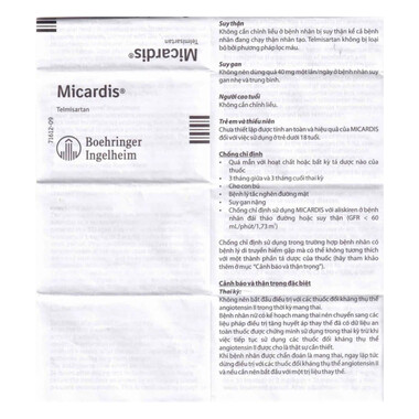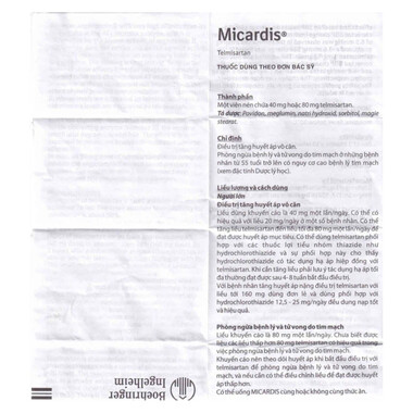 Thuốc Micardis 80mg Boehringer điều trị tăng huyết áp vô căn (3 vỉ x 10 viên)