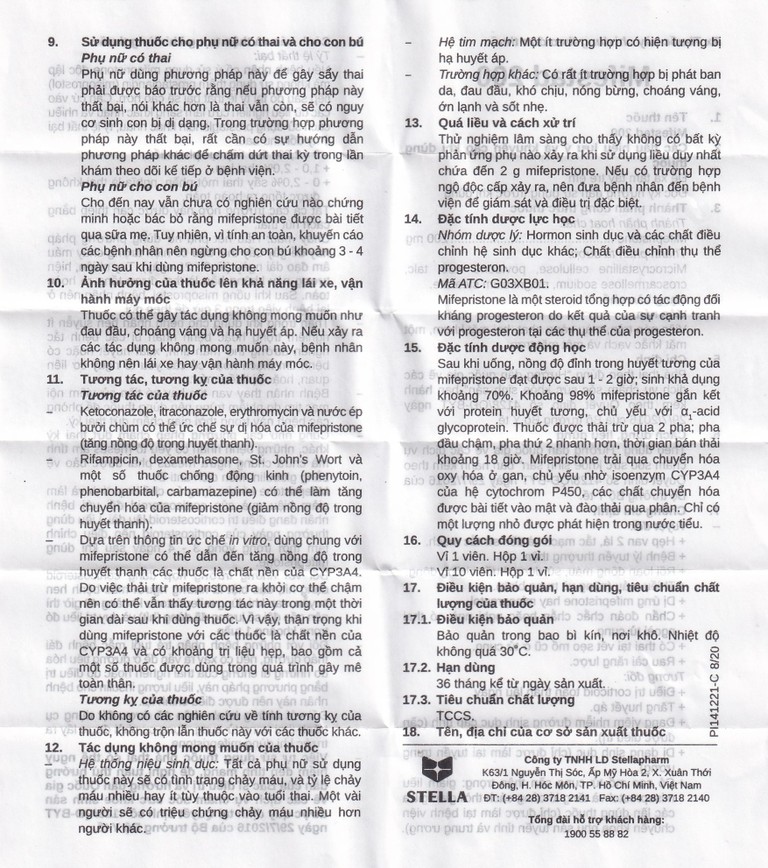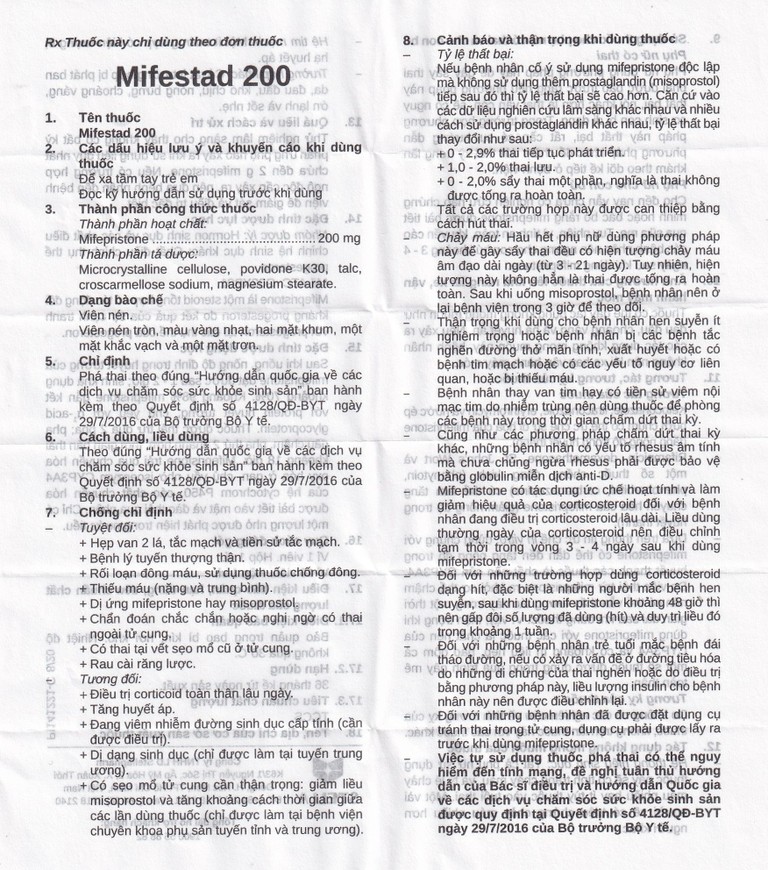 Việc tự sử dụng thuốc phá thai có thể nguy hiểm đến tính mạng, đề nghị tuân thủ hướng dẫn của Bác sĩ điều trị và hướng dẫn Quốc gia về các dịch vụ chăm sóc sức khỏe sinh sản được quy định tại Quyết định số 4128/QĐ-BYT ngày 29/7/2016 của Bộ trưởng Bộ Y tế.