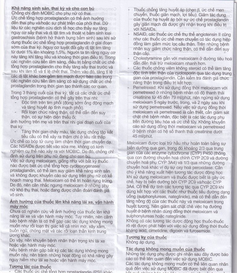 Chống chỉ định MOBIC cho phu nữ có thai.