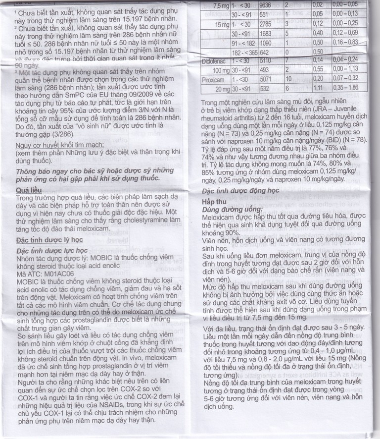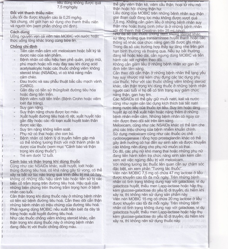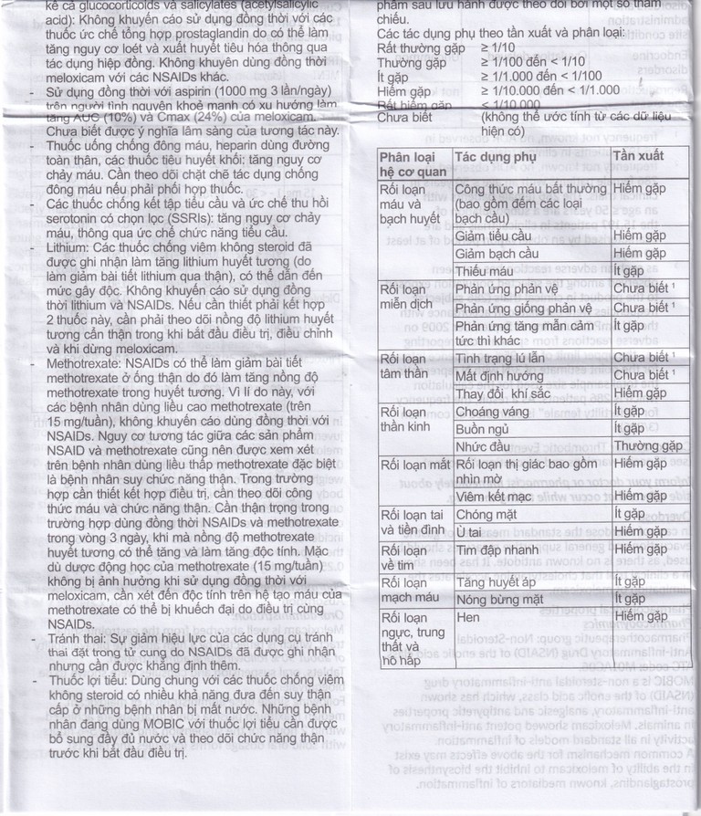 - Không dùng MOBIC cho bệnh nhân từng có dấu hiệu hen phế quản tiến triển, polyp mũi, phù mạch hoặc nổi mày đay sau khi dùng acid acetylsalicylic hoặc các thuốc chống viêm không steroid khác.