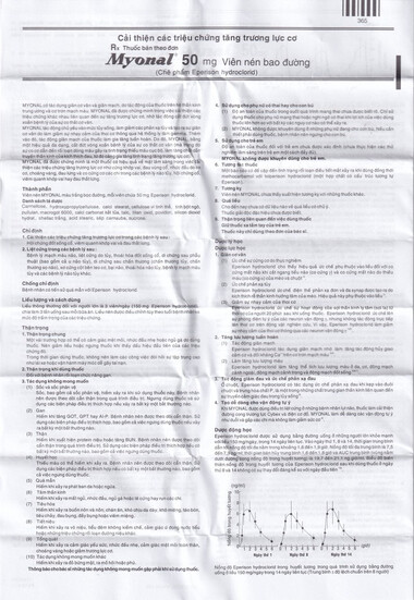 Viên nén MYONAL màu trắng bọc đường, mỗi viên chứa 50mg Eperison hydroclorid.