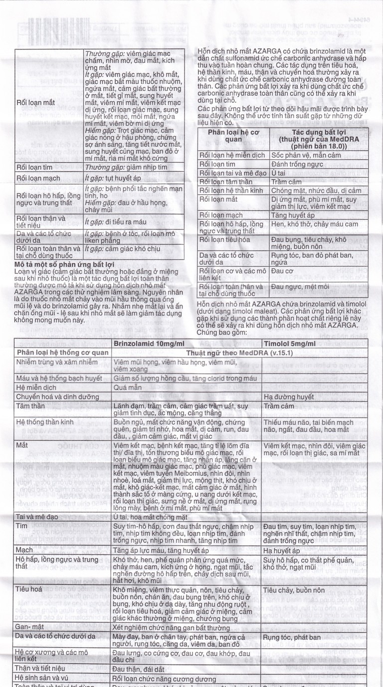 Khi sử dụng thuốc nhỏ mắt Azarga, bạn có thể gặp các tác dụng không mong muốn (ADR).