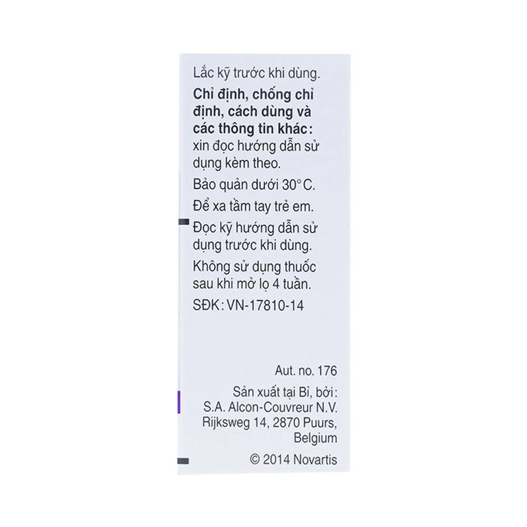 Để tránh nhiễm khuẩn đầu ống nhỏ thuốc và hỗn dịch thuốc, cần thận trọng không để đầu nhỏ của lọ thuốc chạm vào mí mắt và các vùng xung quanh mắt, hoặc bất cứ bề mặt nào. Hướng dẫn bệnh nhân đóng chặt nắp lọ thuốc khi không sử dụng.