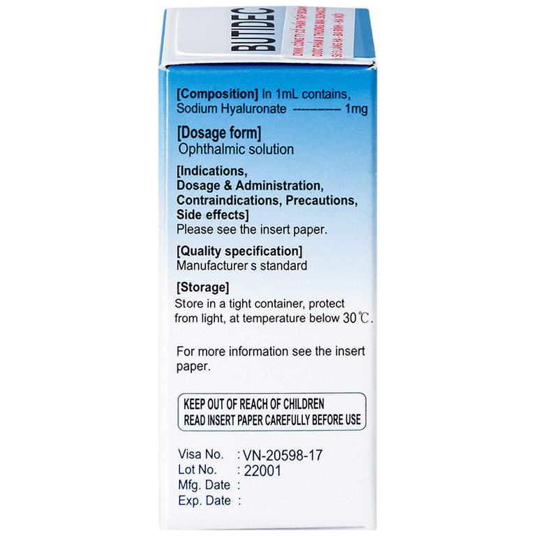 Thuốc Butidec được chỉ định dùng để làm giảm triệu chứng khô mắt.