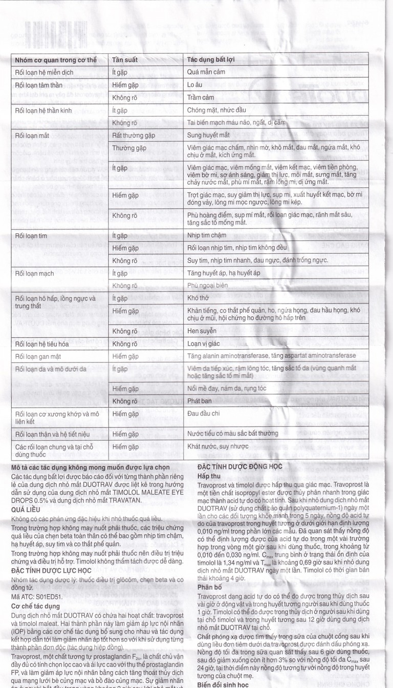 Khi sử dụng thuốc Duotrav, bạn có thể gặp các tác dụng không mong muốn (ADR).