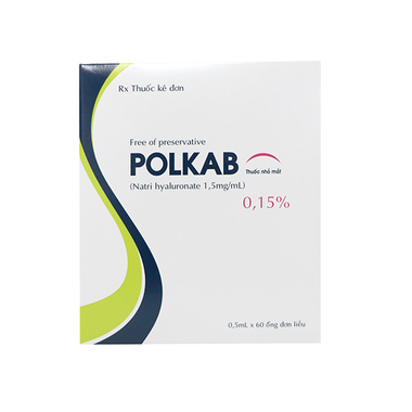Thuốc Polkab thuộc nhóm thuốc kê đơn, thành phần chính là Natri hyaluronate, có tác dụng điều trị tình trạng khô mắt, làm ẩm và làm dịu mắt, được sử dụng như nước mắt nhân tạo.