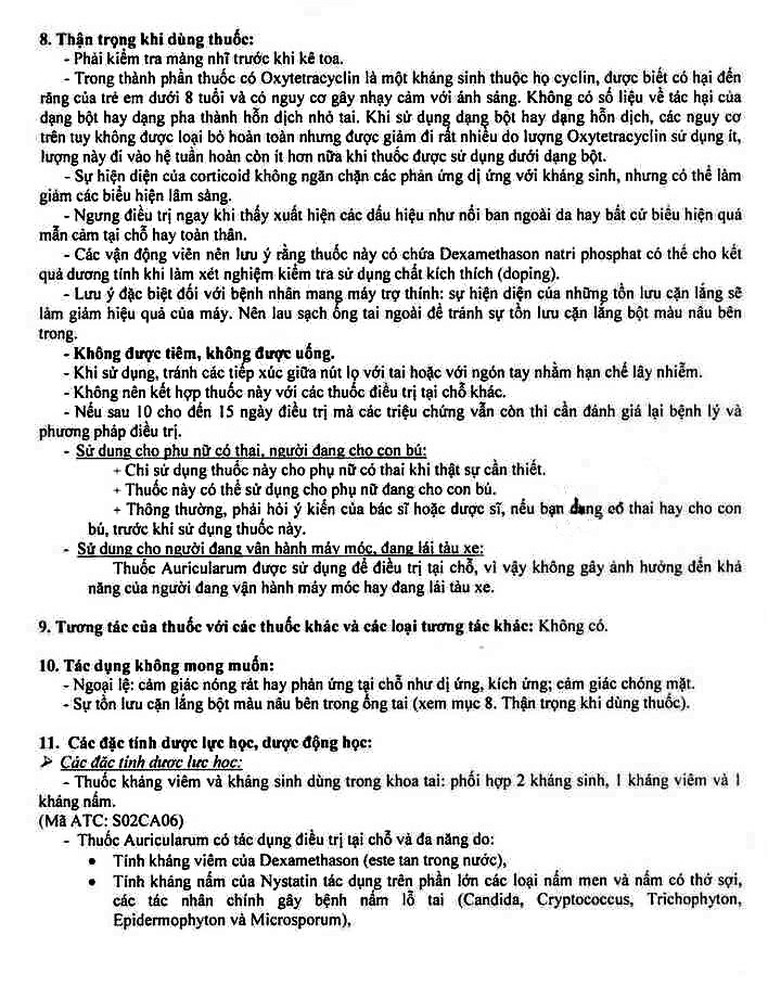 Thuốc không đi vào máu trừ trường hợp màng nhĩ bị rách hay xây xước.