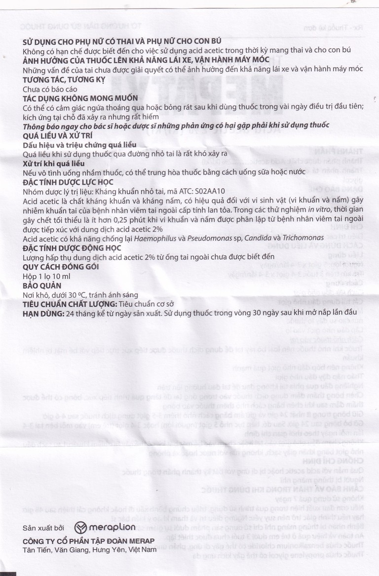 Thuốc nhỏ tai Mepatyl 10ml Merap điều trị nhiễm khuẩn của ống tai ngoài