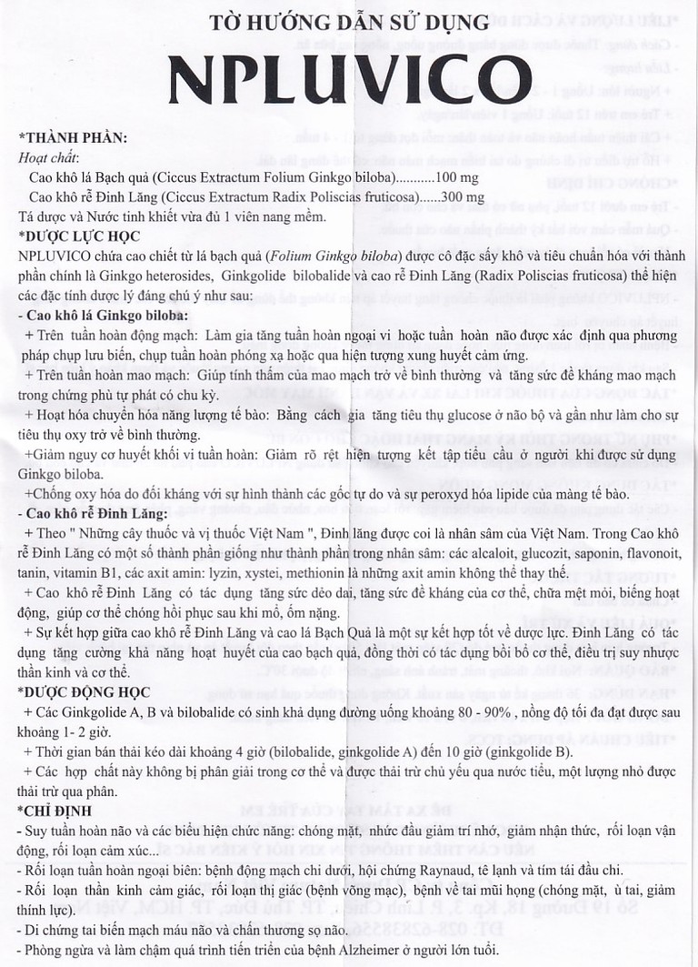 Thuốc Npluvico Nature điều trị suy tuần hoàn não (6 vỉ x 10 viên)SẢN PHẨM