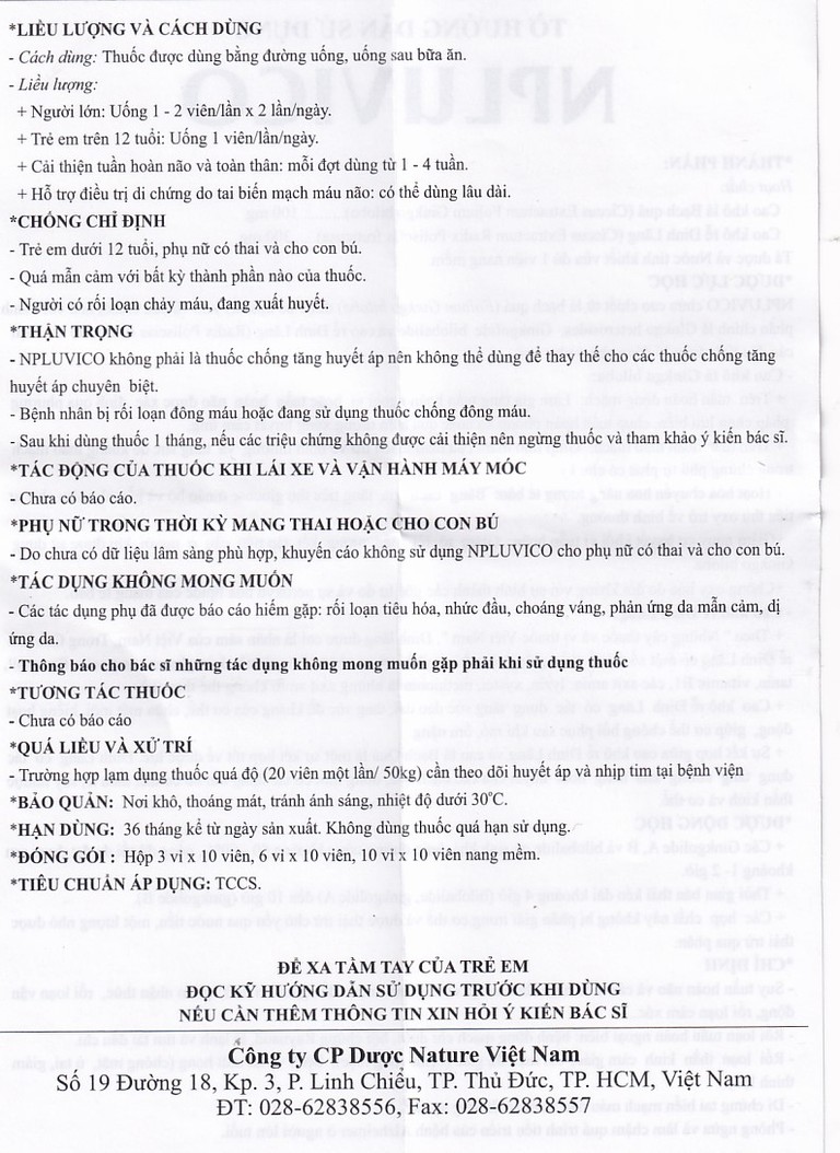 Thuốc Npluvico Nature điều trị suy tuần hoàn não (6 vỉ x 10 viên)