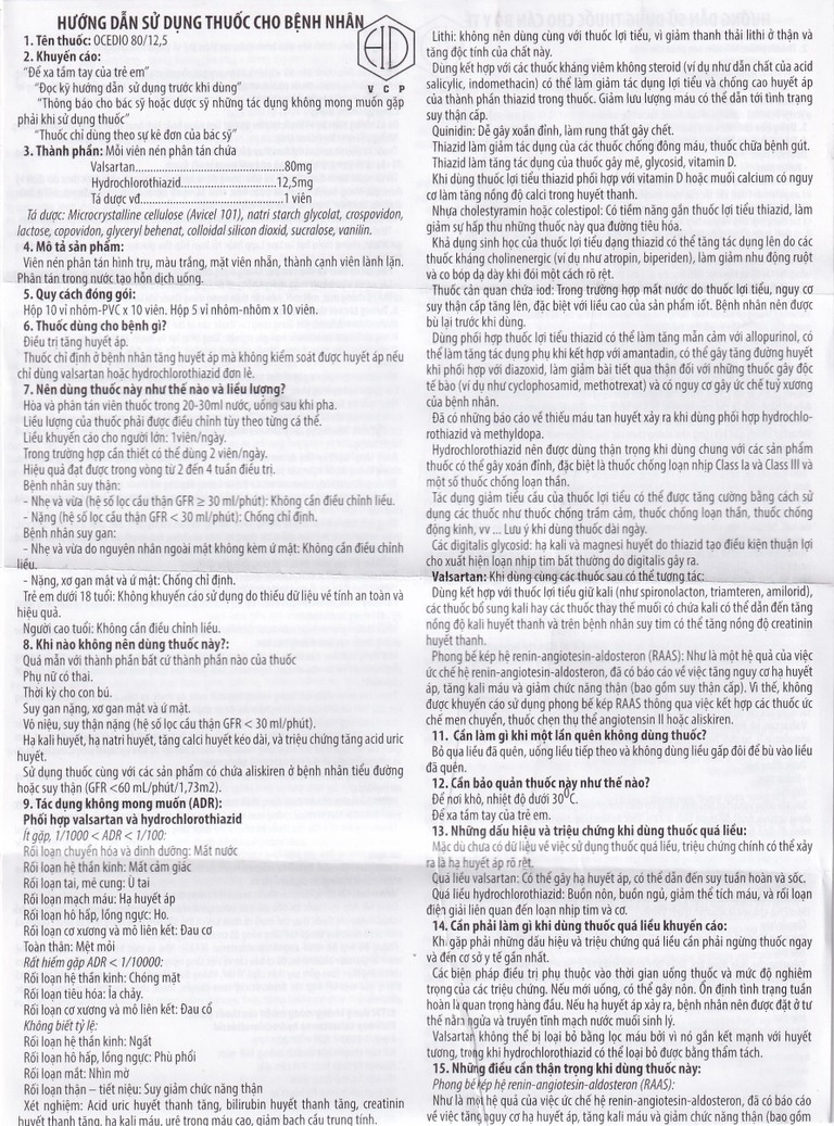 Thuốc Ocedio 80/12,5 VCP điều trị cao huyết áp (5 vỉ x 10 viên)