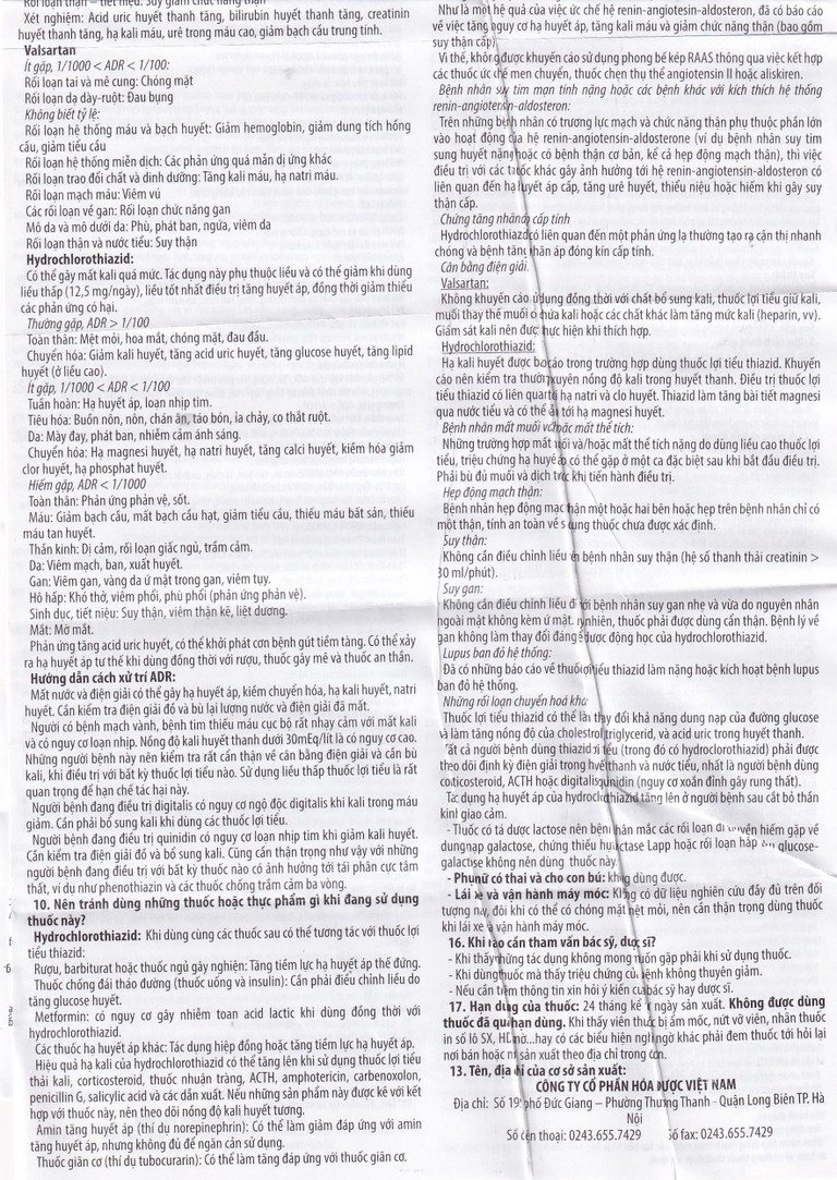 - Thuốc chỉ định ở bệnh nhân tăng huyết áp mà không kiểm soát được huyết áp nếu chỉ dùng valsartan hoặc hydrochlorothiazid đơn lẻ.
