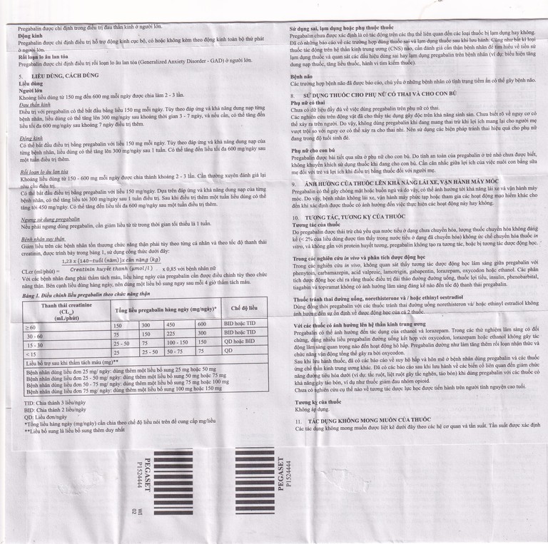 Tốc độ thanh thải pregabalin có xu hướng giảm khi cao tuổi. Mức giảm của tốc độ thanh thải pregabalin theo đường uống thống nhất với mức giảm của tốc độ thanh thải creatinin khi cao tuổi. Có thể cần giảm liều pregabalin cho các bệnh nhân tổn thương chức năng thận do cao tuổi.