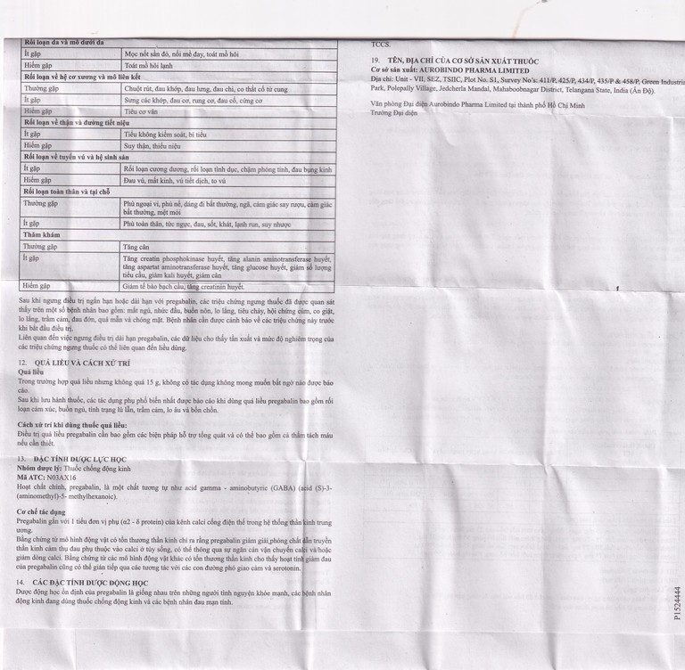 Sau khi lưu hành thuốc, đã có các báo cáo về suy hô hấp và hôn mê ở bệnh nhân dùng pregabalin và các thuốc ứng chế thần kinh trung ương khác. Đã có các báo cáo sau khi lưu hành về các biến cố liên quan đến giảm chức năng đường tiêu hóa dưới (ví dụ: tắc ruột, liệt ruột gây tắc nghẽn, táo bón) khi dùng pregabalin với các thuốc có khả năng gây táo bón, ví dụ như thuốc giảm đau nhóm opioid.