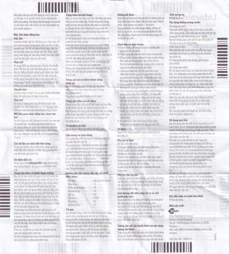 Thuốc phun mù Lidocain 10% Egis dùng trong chỉ định gây tê tại chỗ (38g)