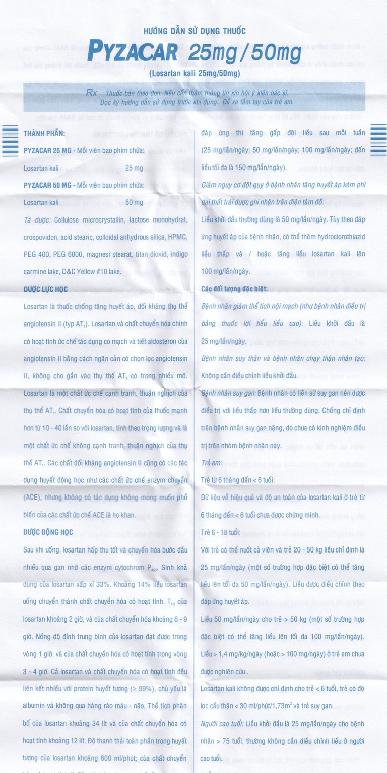 Cách dùng Thuốc Pyzacar 25mg