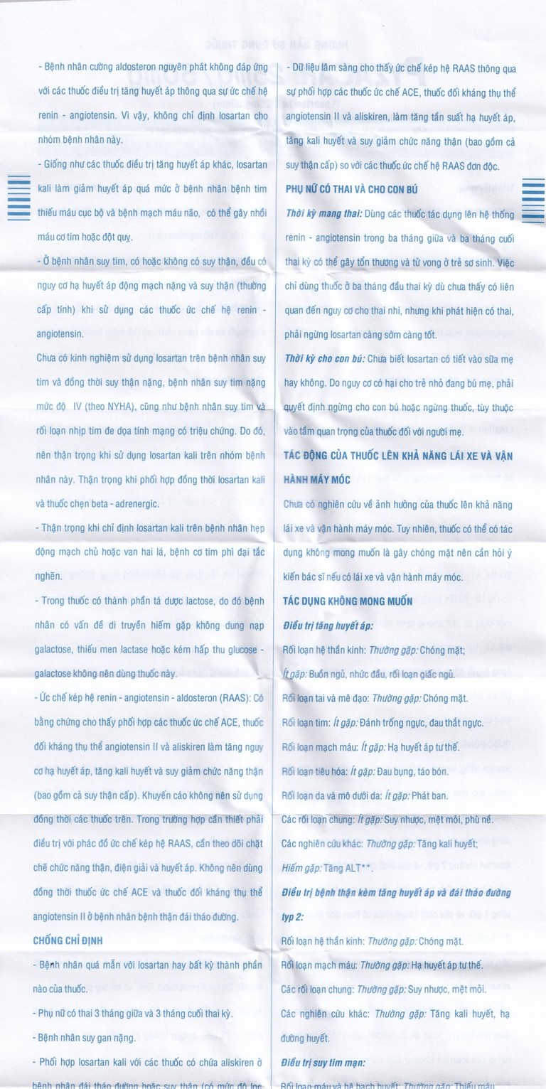 *Thường gặp ở bệnh nhân dùng losartan kali 150 mg thay cho liều 50 mg.