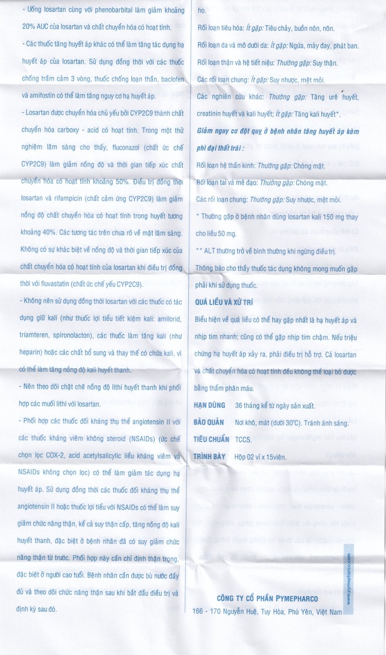 Có thể phối hợp losartan kali với các thuốc điều trị tăng huyết áp khác, đặc biệt với các thuốc lợi tiểu (như hydroclorothiazid).